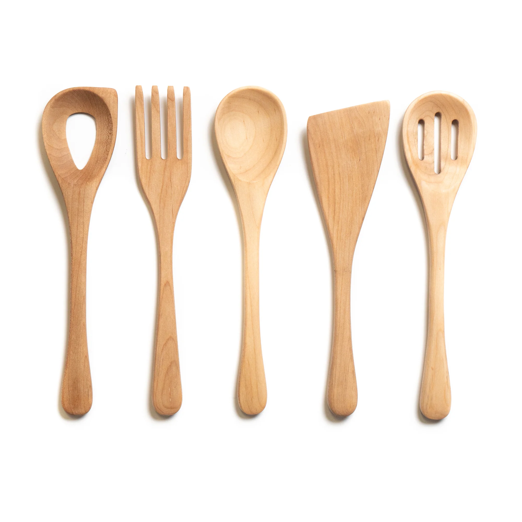 Our wooden spoons and utensils are handmade at our shop in Lancaster, Pennsylvania. Each utensil is carved and hand-sanded to a smooth finish. Prioritizing local resources, we use hardwoods sourced from the Eastern United States including, Black Cherry, Maple, and Walnut. This allows us to be both friendly to the environment and supportive of local industry.Â
